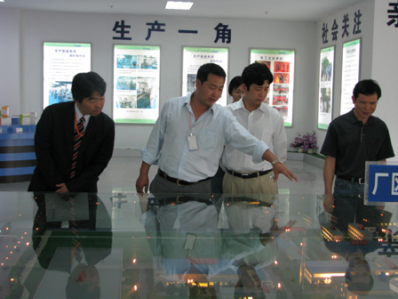 上图为日本客人广中先生(前排右二)等参观公司展厅,公司副总孙松(前排左二)陪同