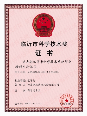 罗欣药业始终坚持“科技兴企”的战略方针,加大科研投入,不断推出高科技含量、高质量、高附加值的“三高”产品。2008年9月,公司研发的产品硫酸头孢匹罗及注射用硫酸头孢匹罗、头孢硫眯及注射用头孢硫眯的新技术获得临沂市科学技术进步奖二等奖,头孢孟多酯钠及注射用头孢孟多酯钠、头孢克肟的新技术获得临沂市科学技术进步奖三等奖。