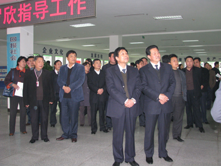 上图为山东省总工会民主管理部部长侯国华(前排左一)、临沂市委副秘书长、机要局局长温希森(前排左二)、临沂市总工会副主席张贤德(前排左三)等领导参观公司工会建设工作时的情景
