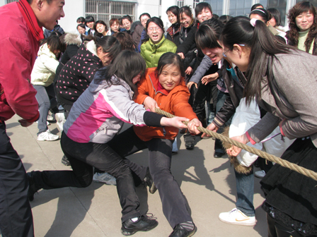 在一年一度的国际“三八”妇女节来临之际,公司评选出“三八红旗手”并颁发证书和奖品以资鼓励。同时组织女职工进行了一场别开生面的拔河比赛和三人协作跑,现场气氛热烈,选手们个个神采奕奕摆出一副“我军必胜”的姿态。比赛在一阵阵的“加油”呐喊声中进入尾声。“商业公司”卫冕拔河比赛与三人协作跑第一名,“固体制剂部”获得拔河比赛第二名,“粉针部”获得三人协作跑第二名。